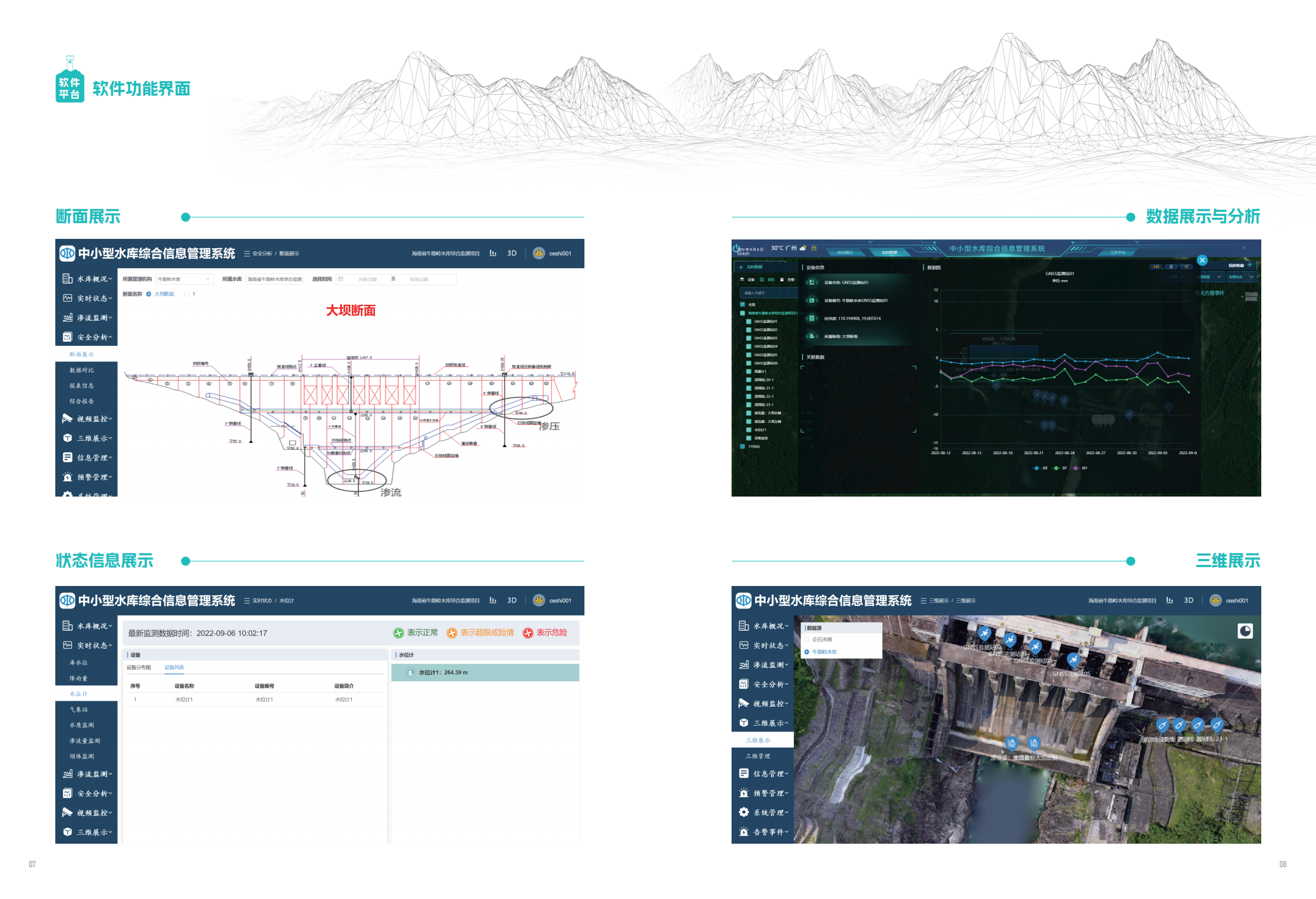 南方中小型水庫一體化綜合信息管理系統(tǒng)軟件是廣州南方測繪科技股份有限公司自主研發(fā)、具備完全自主知識產(chǎn)權(quán)的一體化綜合管理系統(tǒng)軟件,可適配多種水利監(jiān)測監(jiān)控要素(包含視頻圖像)。目前,已集成適配監(jiān)測傳感器包含:GNSS接收機、滲壓計、量水堰計、雨量計、雷達水位計、氣泡水位計、浮子水位計、投入水位計、靜力水準儀、水質(zhì)監(jiān)測傳感器、視頻設(shè)備等數(shù)十種傳感器,同時可適配無人機、無人船兩種裝備相關(guān)數(shù)據(jù)(包含軌跡、視頻、圖像、監(jiān)測數(shù)據(jù)等)展示。南方中小型水庫一體化綜合信息管理系統(tǒng)軟件具備綜合聯(lián)動分析功能,可基于高差、淹沒速度及淹沒方式進行洪水淹沒預(yù)演,并根據(jù)實際情況制定撤離預(yù)案,另外還可基于歷史數(shù)據(jù)進行預(yù)測。