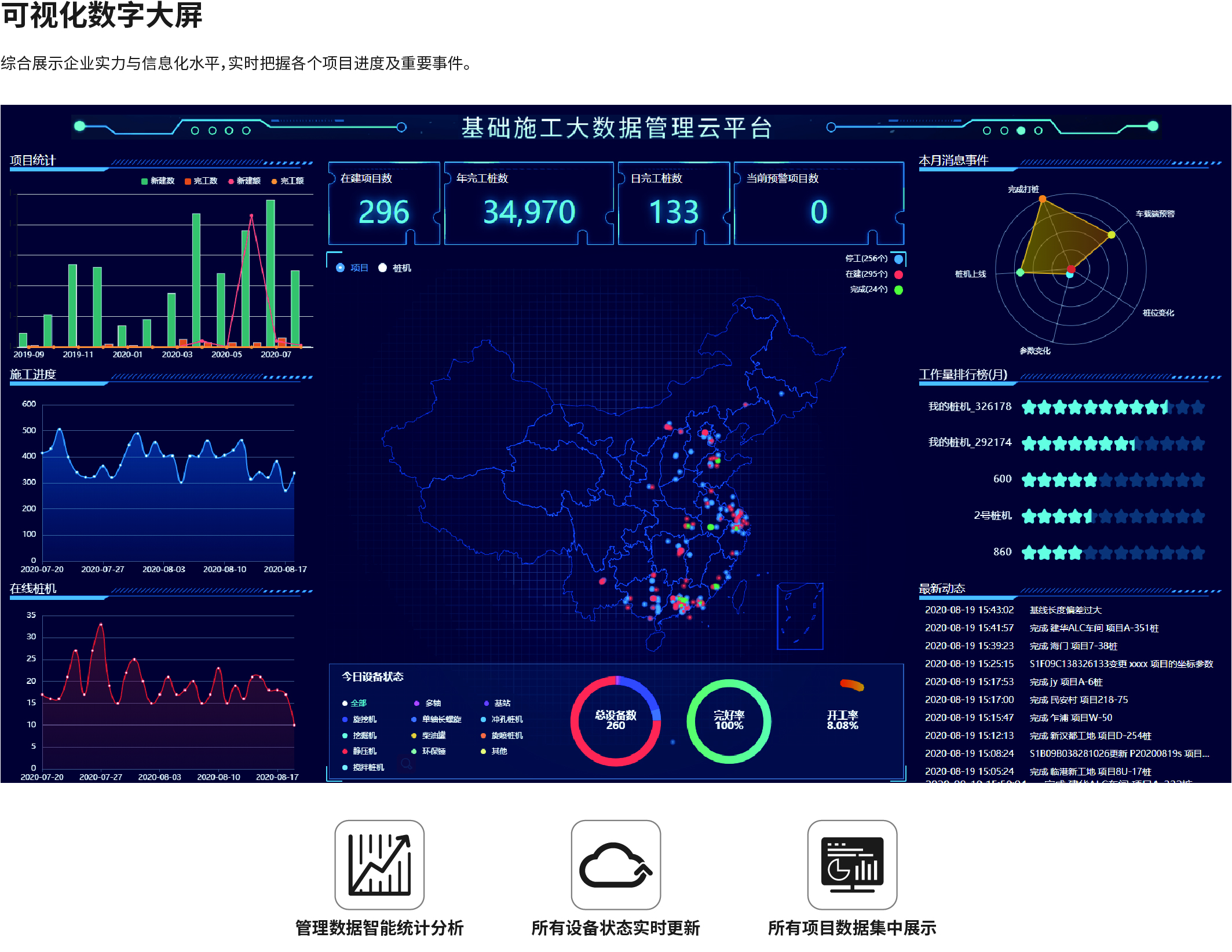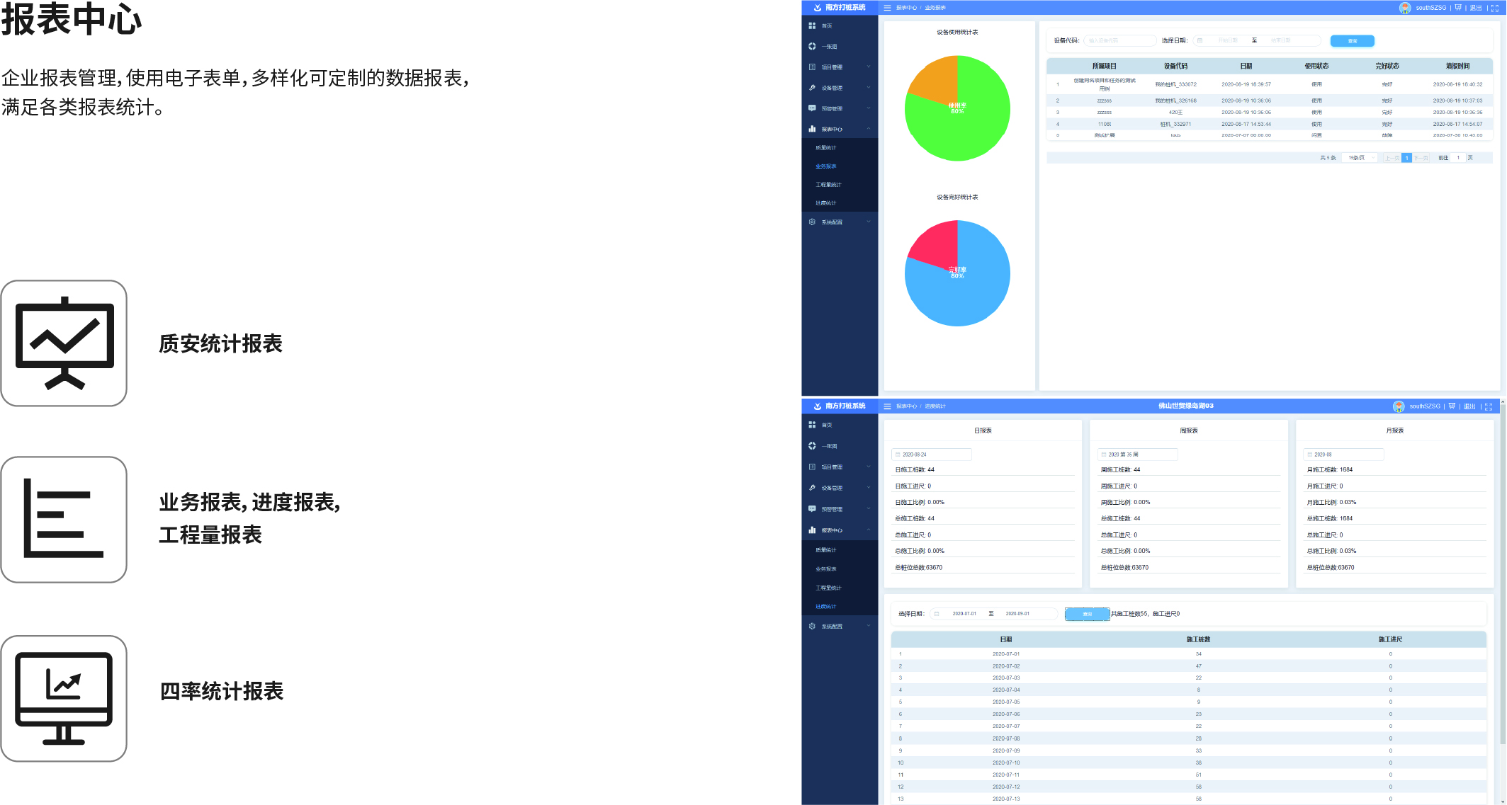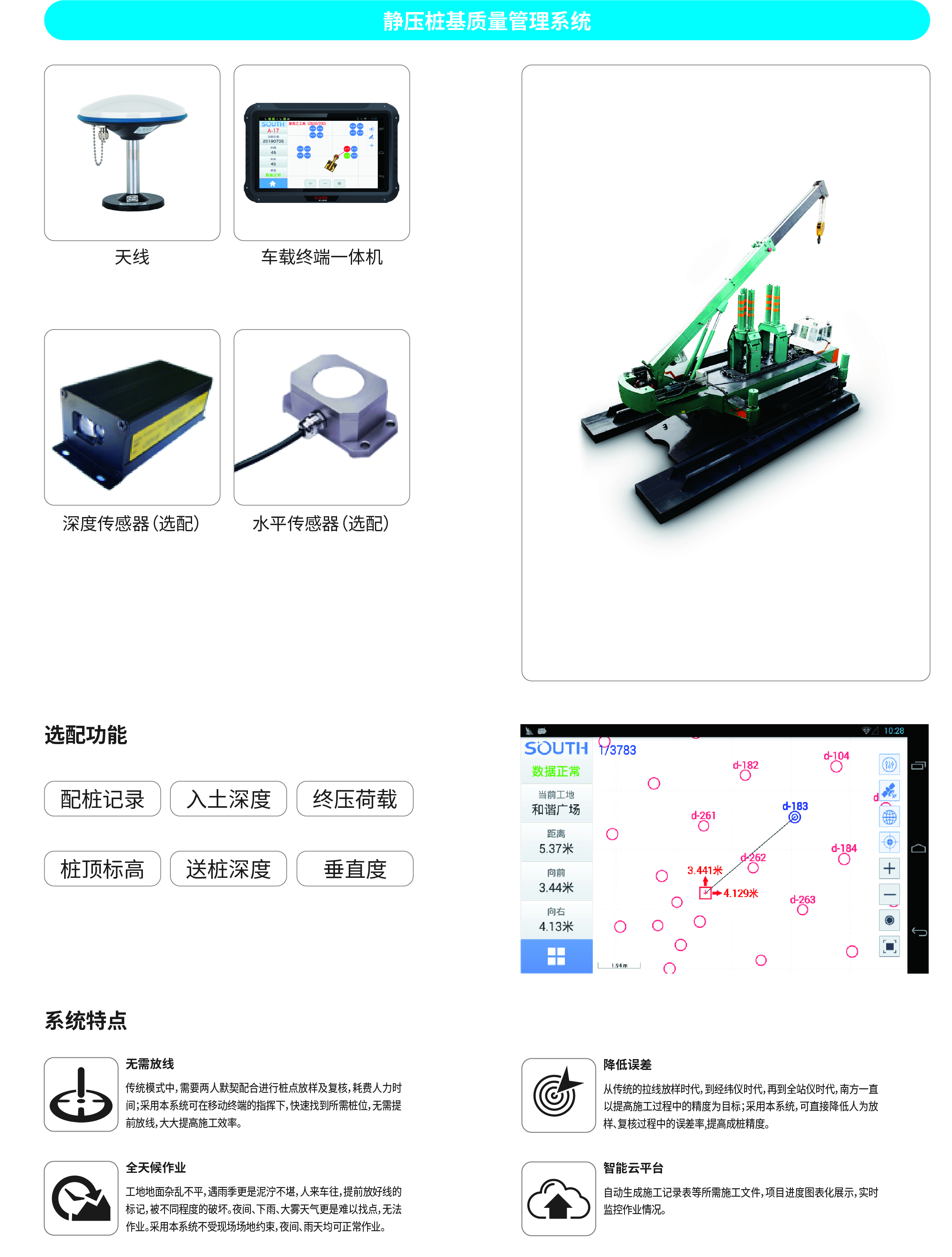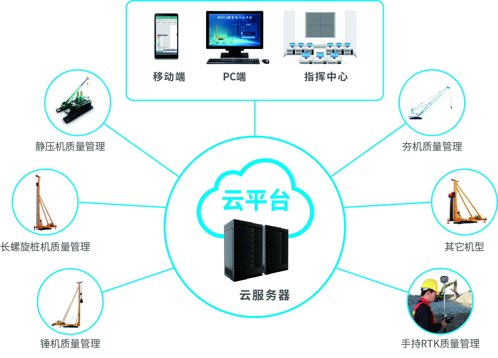 南方NDCS數(shù)字化施工云平臺(tái)是依托物聯(lián)網(wǎng)、互聯(lián)網(wǎng)建立的大數(shù)據(jù)管理平臺(tái)。平臺(tái)以“互聯(lián)網(wǎng)+”為理念,實(shí)現(xiàn)了地基處理施工全過(guò)程信息化、數(shù)字化、智能化和可視化,為靜壓樁機(jī)、液壓錘、柴油錘、長(zhǎng)螺旋、旋挖機(jī)、多軸樁機(jī)等多類(lèi)基礎(chǔ)機(jī)械在施工質(zhì)量管理方面提供整套優(yōu)質(zhì)的綜合解決辦法。平臺(tái)可實(shí)現(xiàn)對(duì)施工進(jìn)度、施工質(zhì)量、施工設(shè)備的信息化管理以及智能統(tǒng)計(jì)、智能預(yù)警、智能化施工等功能,并配備“施工云管家”APP端,實(shí)現(xiàn)遠(yuǎn)程化項(xiàng)目多設(shè)備管理,讓用戶(hù)能實(shí)時(shí)遠(yuǎn)程把控現(xiàn)場(chǎng)施工進(jìn)度、質(zhì)量,高效管理調(diào)度自有及租賃設(shè)備,有效加強(qiáng)項(xiàng)目風(fēng)險(xiǎn)管控與目標(biāo)執(zhí)行。