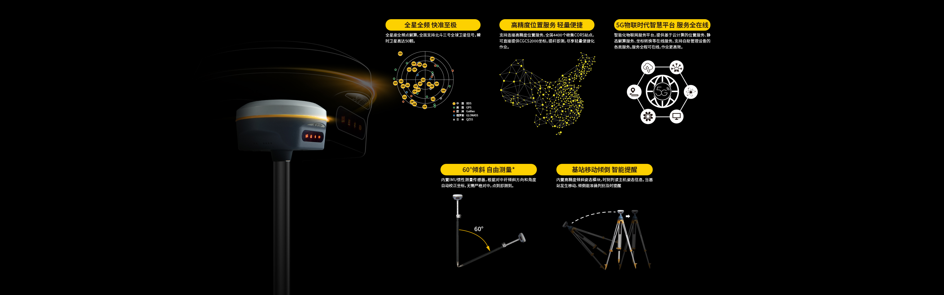 慣導(dǎo)傾斜測量(選配) | 內(nèi)置IMU慣性測量傳感器,支持慣導(dǎo)傾斜測量功能,根據(jù)對中桿傾斜方向和角度自動校正坐標(biāo)。 |