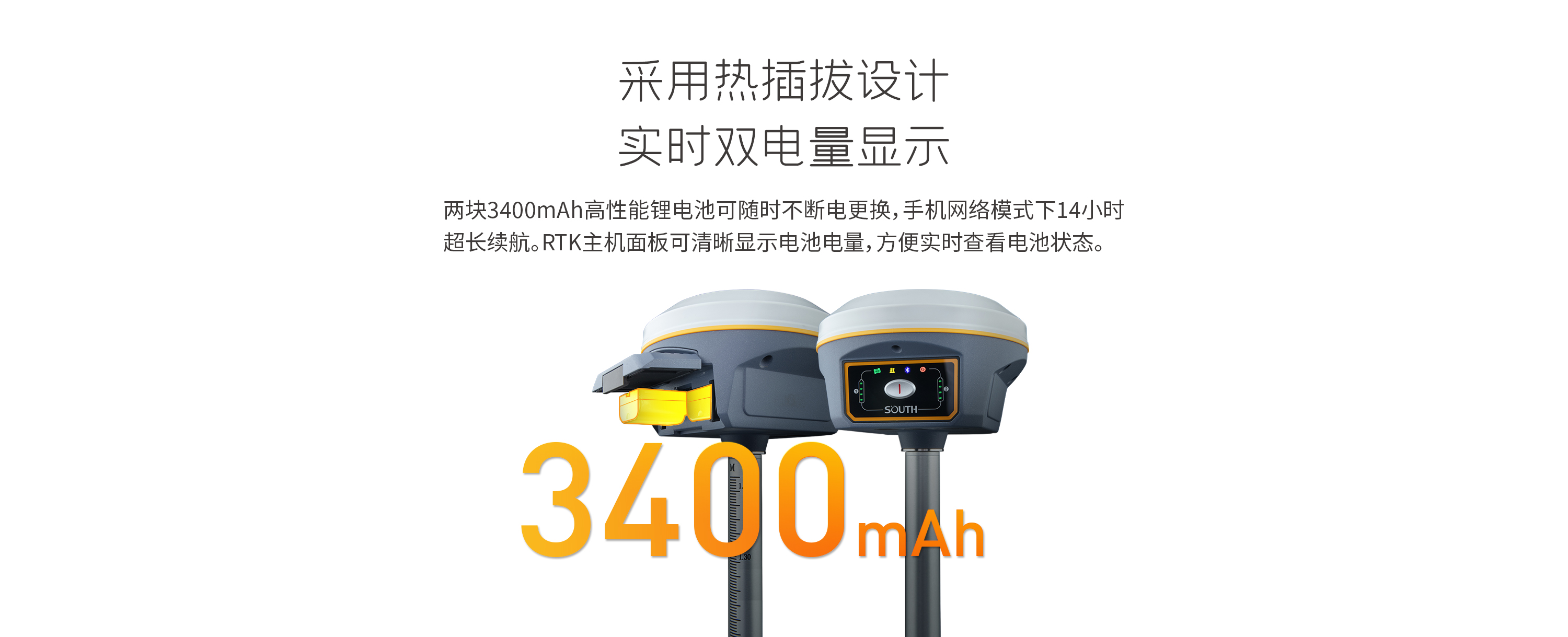 移動(dòng)站手簿網(wǎng)絡(luò)模式作業(yè)滿足14小時(shí)續(xù)航時(shí)間,支持桿狀電池棒供電方式,可支持其他變壓供電系統(tǒng),
